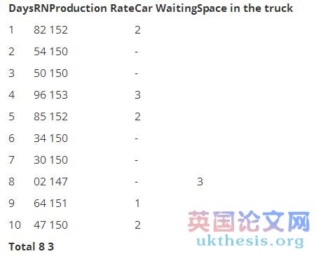 At present the track will hold 150 cars. Using the following random numbers determine the average number of cars waiting for shipment in the company and average number of empty space in the truck. Random Numbers 82, 54, 50, 96, 85, 34, 30, 02, 64, 47?