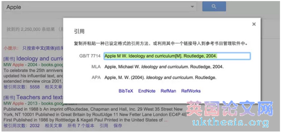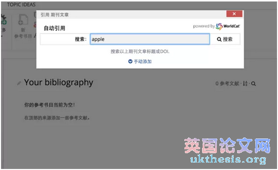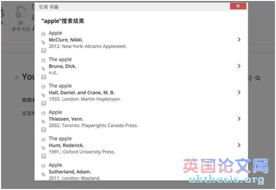 使用方法也很簡單,只要點擊你需要做文獻的類型,比如這里我選擇了“書籍”,然后輸入了我這本書籍的名稱“Apple”。