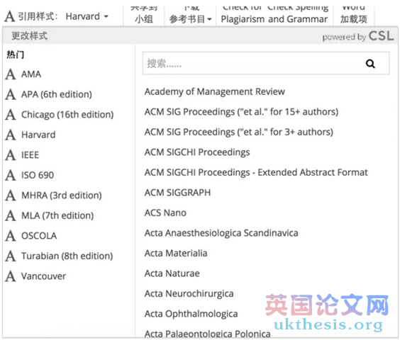 你以為它的功能僅限于此了嗎?圖樣圖森破!一般來說,在英國寫dissertation的話,文獻目錄的格式要求是使用Harvard文獻格式。不過大家如果有別的需要,都可以在“引用樣式”哪里進行修改哦!