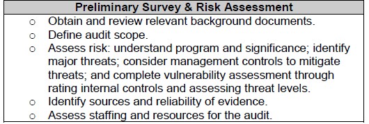 preliminary survey (planning the audit and conducting risk assessment), and 3) developing the audit