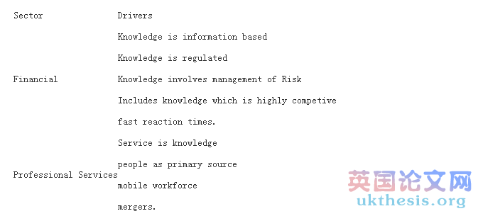 Every organization works in an environment which decides the way an institution should conduct its business. There are a number of drivers for various sectors which decide how that company should go about knowledge management,