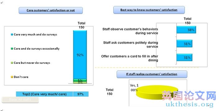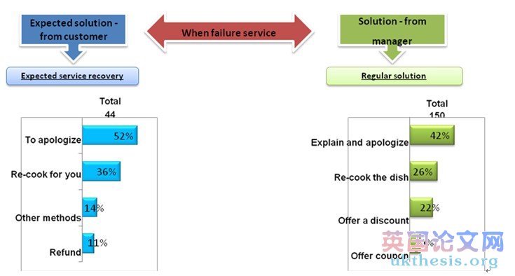 Given that there is no formal way to collect customer’s dissatisfaction/opinion, some consumers likely behave extremely if they are not satisfied. These behaviors will even worry the managers. The most concerned situation to managers is that customers complain loudly when they are not satisfied. This could influence other customers and impact the business. However managers do not concern a lot if customers keep silent or ask for compensation directly, though this also hurts the restaurant.
