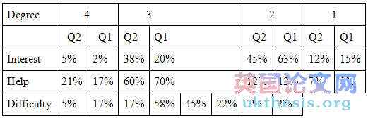 There are the same three questions used in two questionnaires to get the students’ general opinion about reading. (See Appendix A and E) The questions deal with three aspects: degree of interest, help and difficulty in their reading work. The followings are the three questions:#p#分頁標(biāo)題#e#