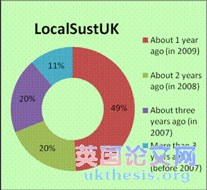 在為期30天的網上調查,網上問卷已部署通過E-Mail的的新聞的信(LocalSustUK&ClimateConcern)和網上論壇(過渡鎮和我們的地球/地球日),并在此期間有148收到的答復。然而,經過審查和清理那些未完成的響應,共收到僅為119完成調查的回應,從受訪者中,分布在四個論壇35反應ClimateConcern,53反應LocalSustUK,從過渡鎮20份答復,從我們的星球和答復11。這些論壇都集中在氣候變化問題,環境問題。