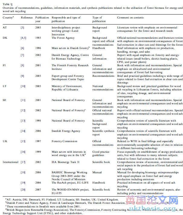 The substitution of biomass for fossil fuels in energy consumption is a measure to decrease the emission of green house gases and thereby mitigate global warming. In this perspective, the use of forest biomass for energy is generally acknowledged as being in agreement with the principles for sustainable development. Carbon bound in biomass is released during combustion, but taken up by new vegetation again during photosynthesis with a corresponding build-up of carbon. There are other advantages of utilising forest biomass for energy, e.g. security of supplies and employment, but adverse effects for society, forestry, and the energy sector are also recognised. A major concern is to optimise the amount of forest biomass harvested for energy against recognised adverse effects. This balancing of trade-offs will have an impact on the amount of forest biomass produced for energy [1]. During the last 20–30 years, much research has been performed, and information has been disseminated and implemented at different levels to ensure sustainable forest fuel harvesting. Research and review work was performed within the EU-FP5 project ‘‘Wood for Energy-a contribution to the development of sustainable forest management’’ (WOOD-EN-MAN), which had partners from four Nordic and three Baltic countries. The present paper was written as a part of the synthesis work within the project. Its aim is to give a brief overview and identify the status of knowledge implementation among potential end-users of the scientific knowledge created and reviewed within the project. The aim is further to contribute to discussion, development, and harmonisation, but also to recognition of a need for local adaptation of governance complexes, including legislation, certification standards, and recommendations and guidelines in relation to the sustainable use of forest biomass and wood ash recycling. Bioenergy-relevant contents of a broader range of certification standards have also been reviewed by Lewandowski and Faaij [2] with the purpose of creating a generic set of criteria for sustainable bioenergy use. Within the framework of sustainable development, the paper more specifically gives an overview of recommendations, guidelines, and synthesis literature related to utilisation of forest biomass for energy and wood ash recycling, highlights the main incentives, advantages, disadvantages, and trade-offs between economic, environmental, and social sustainability criteria for society in general and the forestry and energy sectors, identifies how criteria and indicators for sustainable utilisation of forest biomass for energy are included in forest policy, forest legislation, and forest certification, and discusses the role of forest policy, legislation, certification, recommendations and guidelines, and research in relation to promotion of a sustainable utilisation of forest biomass for energy. Due to the composition of the WOOD-EN-MAN project group, the main geographic scope is the Nordic and Baltic countries, but comparisons have also been made with other European countries. #p#分頁標(biāo)題#e#