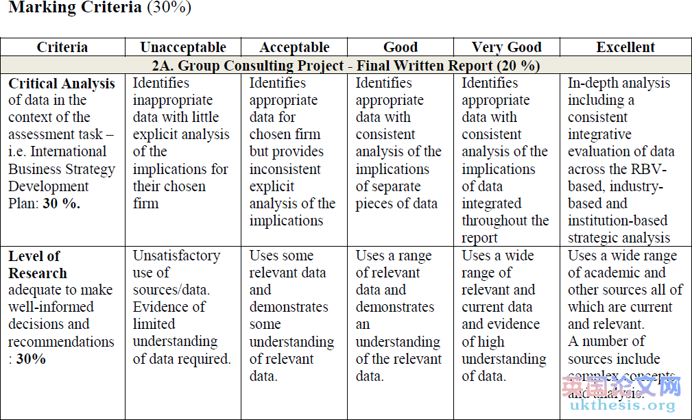 以上是英國dissertation網(wǎng)提供的澳大利亞MBA課程essay評分標(biāo)準(zhǔn),有代寫需要請咨詢我們客服!