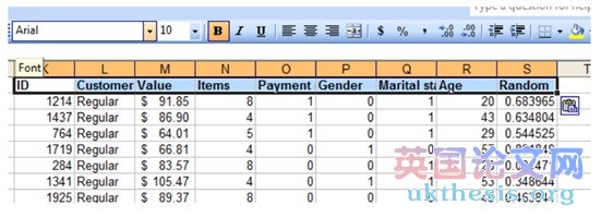 現在,向下滾動的數據集,并期待在B列,我們希望找到的第一行包含一個“普通”顧客。在這個例子中,我們要采取一切行57行開始,將它們移動到一個單獨的電子表格的一部分。